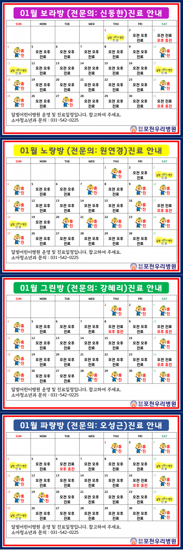 [2026년 01월] 소아청소년과(달빛어린이병원) 진료 시간표