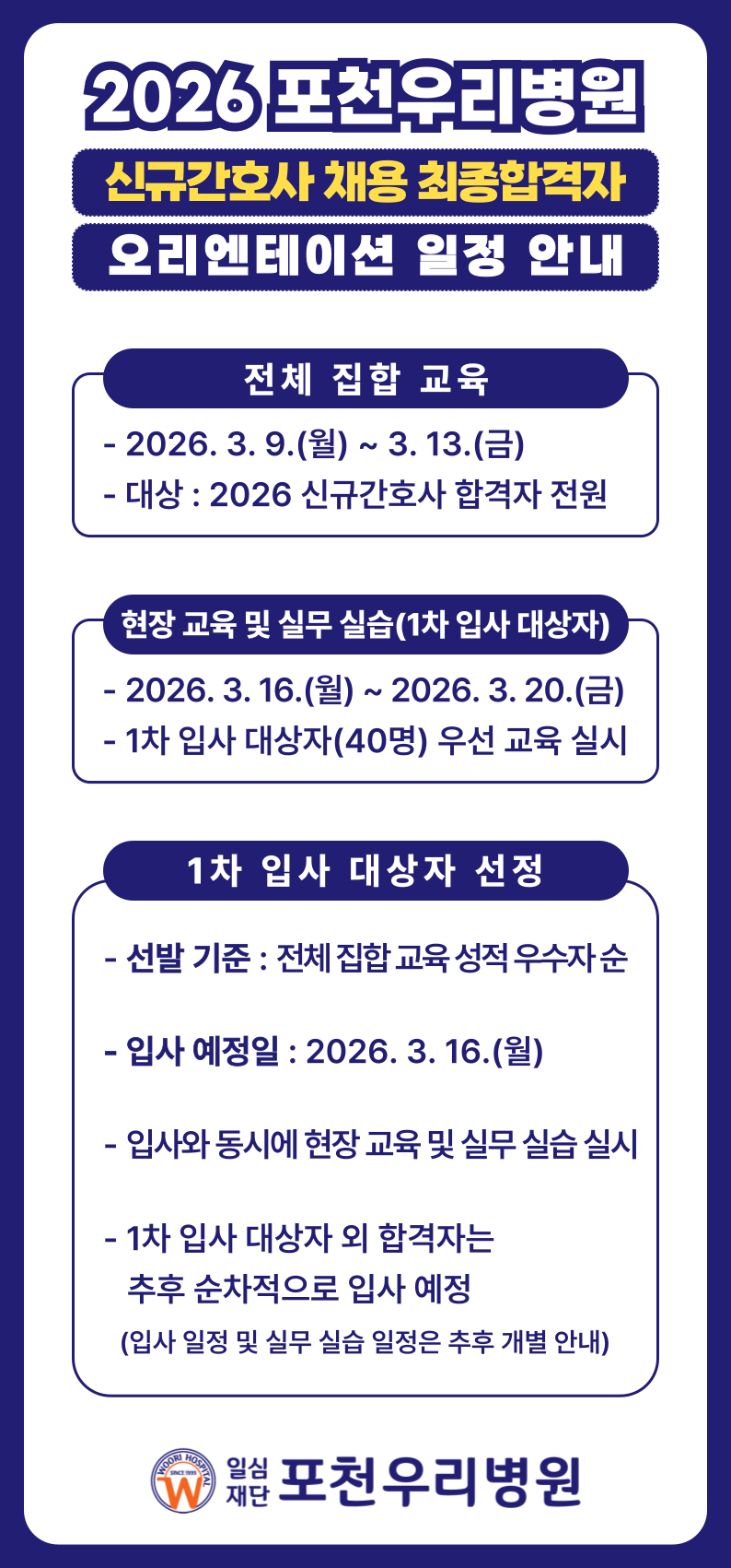 ■ 2026 포천우리병원 신규간호사 최종합격자 명단■