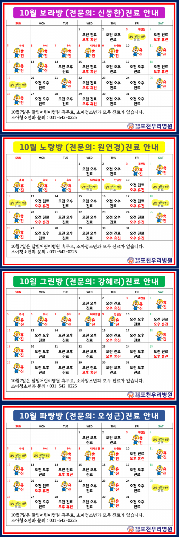 [ 2025년 10월 소아청소년과 진료 시간표 ] - 게시일 : 2025년09월26일 / 수정일 : 2025년10월27일