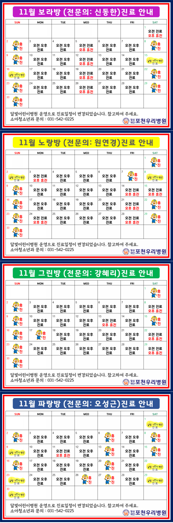 [ 2025년 11월 소아청소년과 진료 시간표 ] - 게시일 : 2025년10월28일 / 수정일 : 2025년11월25일