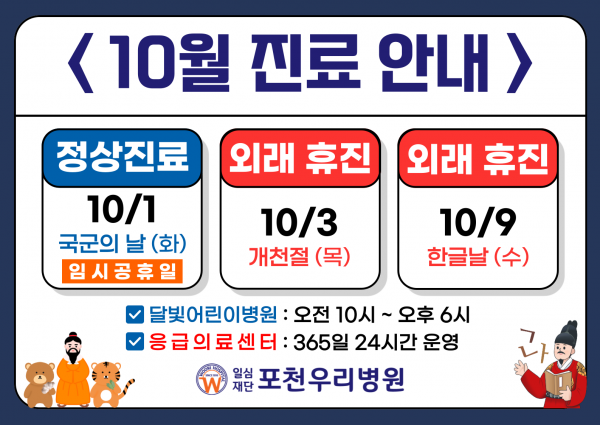 10월 1일 (화) 임시공휴일 정상 진료