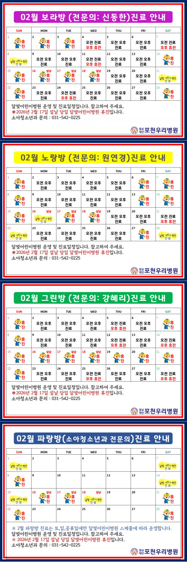 [2026년 02월] 소아청소년과(달빛어린이병원) 진료 시간표
