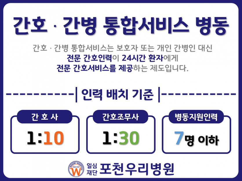 간호간병 통합서비스 병동 안내 및 인력 배치 현황 페이지 정보 작성자 우리병원 작성일26-01-05 11:26 조회36회 전화번호 0315420222 댓글0건 관련링크 다음글 목록 본문 간호간병 통합서비스 병동 안내 및 인력 배치 현황 다음글 목록