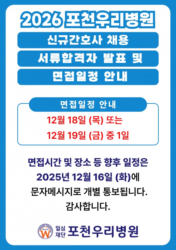 2026 신규간호사 채용 서류합격자 발표 및 면접일정 안내