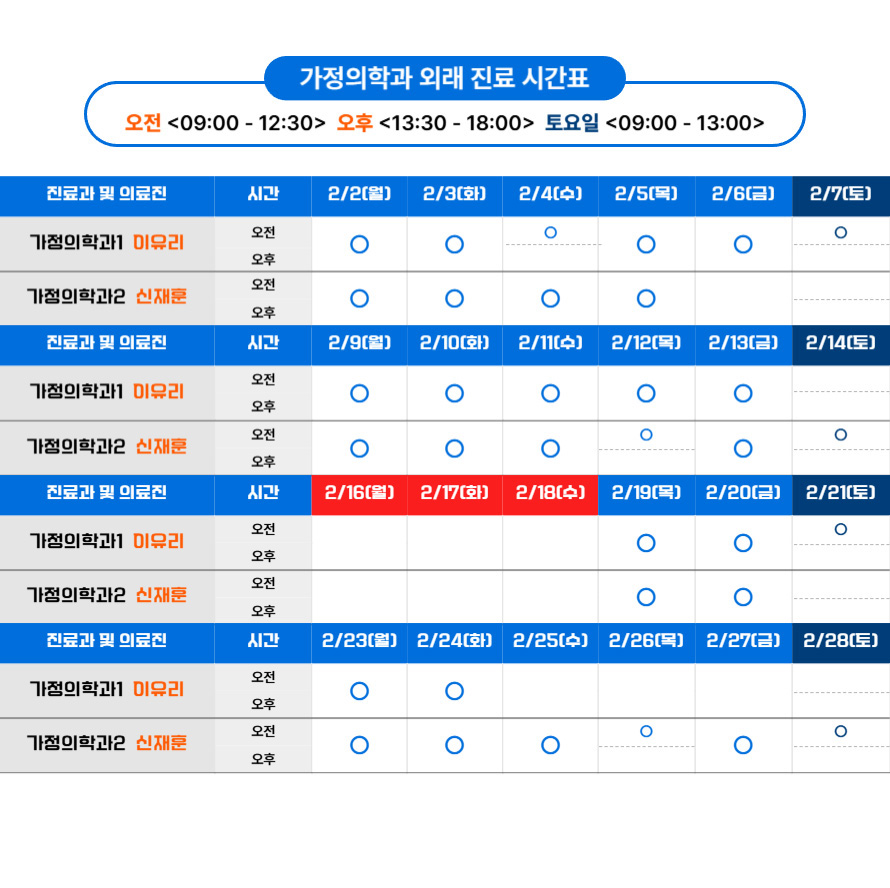 포천우리병원 가정의학과는 일상적인 건강검진부터 만성질환 관리, 예방접종과 건강 상담까지 전 세대를 아우르는 폭넓은 진료를 제공하며, 필요시 각 진료과와 협력하여 환자에게 가장 적합한 치료와 관리 전략을 수립하고 있습니다. 앞으로도 가정의학과는 환자와 가족의 건강한 삶을 지키기 위해 신뢰받는 주치의로서 지역사회와 함께하겠습니다.