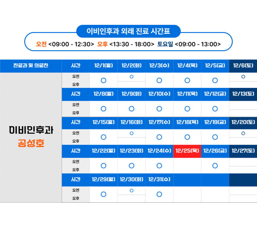 포천우리병원 이비인후과는 이명, 코막힘과 같은 흔한 증상부터 난청, 축농증, 갑상선 질환과 같이 삶의 질과 건강에 중대한 영향을 미치는 질환까지 폭넓게 다루며, 필요시 다른 진료과와 긴밀한 협진을 통해 환자 맞춤형 치료 전략을 수립하고 있습니다. 앞으로도 이비인후과는 난청과 어지럼증, 알레르기 비염, 수면무호흡증 등 삶의 질에 직결되는 다양한 귀·코·목 질환을 전문적으로 관리하며, 환자가 더욱 편안하고 활력 있는 일상을 이어갈 수 있도록 최선을 다하겠습니다.